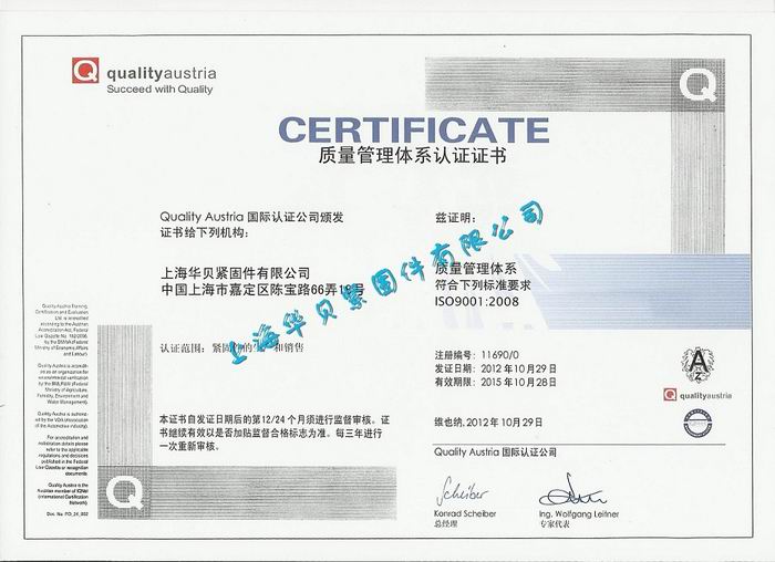 质量认证证书中文版